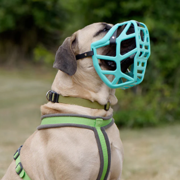 Een muilkorf, maar dan hond-vriendelijk. Aan ieder detail is gedacht. De hond heeft genoeg ruimte om te hijgen, om te drinken en er is gedacht om voertjes te kunnen geven aan je hond(!). De korf is lichtgewicht, en met de juiste aanleer-fase vind je hond het geen probleem om deze te dragen. Of je hond nu een muilkorf nodig heeft voor de dierenarts, het eten van straat, als bijt-risico of omdat hij gewoon even wat meer ruimte nodig heeft op straat, deze muilkorf is ontwikkeld met het welzijn van jouw hond voorop.