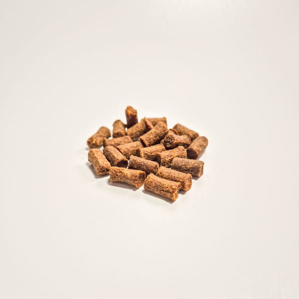 Heerlijke hypoallergene trainers gemaakt van luchtgedroogde zalm om je hond of kat lekker en verantwoord te belonen. De grondstoffen en productie zijn uitsluitend Europees. De trainers van vis voor de hond zijn gemaakt van 98% puur zalm, géén orgaanvlees of slachtafval. Er werd 1,5% appelvezel aan toegevoegd voor de structuur van de snoepjes, dit is een volledig hypoallergene en natuurlijke toevoeging. De snoepjes zijn eerst luchtgedroogd en daarna lichtjes gerookt op beukenhout, wat deze snoepjes erg uniek en extra aantrekkelijk maakt. Ze kleven niet aan de handen, dus gemakkelijk op te bergen of te gebruiken tijdens de training. Ook geschikt voor puppy’s en jonge honden!