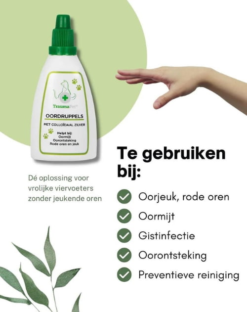 De unieke formule van de oordruppels met colloïdaal zilver reinigt en verzorgt effectief de oren van je geliefde huisdier op lange termijn. De TraumaPet oordruppels kunnen dus niet alleen gebruikt worden ter ondersteuning van oorproblemen, maar ook voor preventief gebruik. Op deze manier kan het colloïdaal zilver de kans op jeuk, oormijt en oorinfecties helpen verminderen.